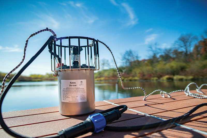 Der KASCO DE-ICER bewegt warmes Wasser vom Grund des Gewässers an die Oberfläche und verhindert so die Eisbildung rund um Boote oder Anlegestellen und somit auch die damit einhergehenden kostspieligen Schäden. Außerdem sorgt er dafür, dass Fische selbst im tiefsten Winter ausreichend mit Sauerstoff versorgt werden.