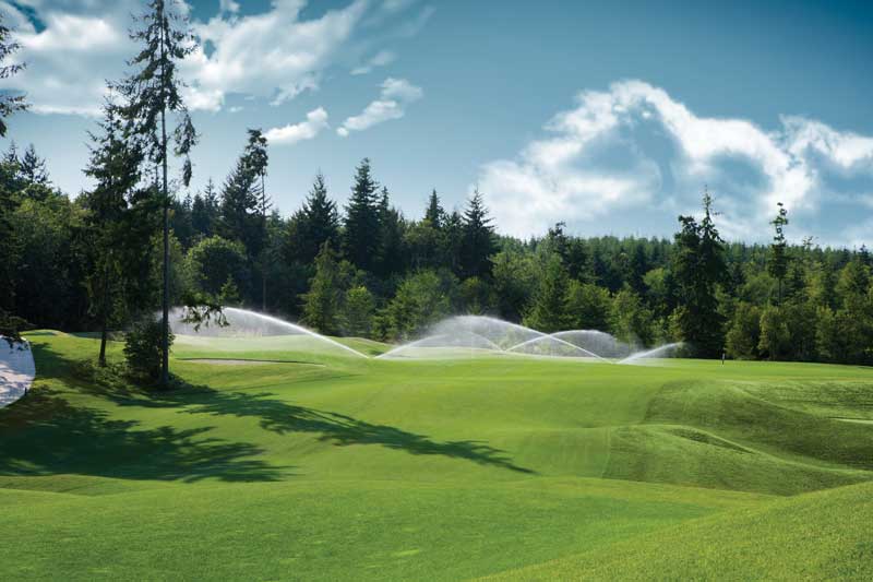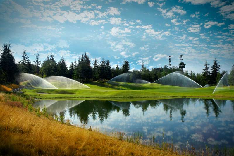 Auf Golfplätzen ist die stetige Pflege der Anlage und vor allem des Rasens sowie ein gutes Wassermanagement unerlässlich. Ein flächendeckend sattgrüner Rasen ist ohne ein automatisches Bewässerungssystem kaum realisierbar. Durch die gleichmäßig verteilte und gezielte Beregnung erreichen Sie eine erhebliche Wasser- und Zeitersparnis, die sowohl ökonomische als auch ökologische Vorteile mit sich bringt.